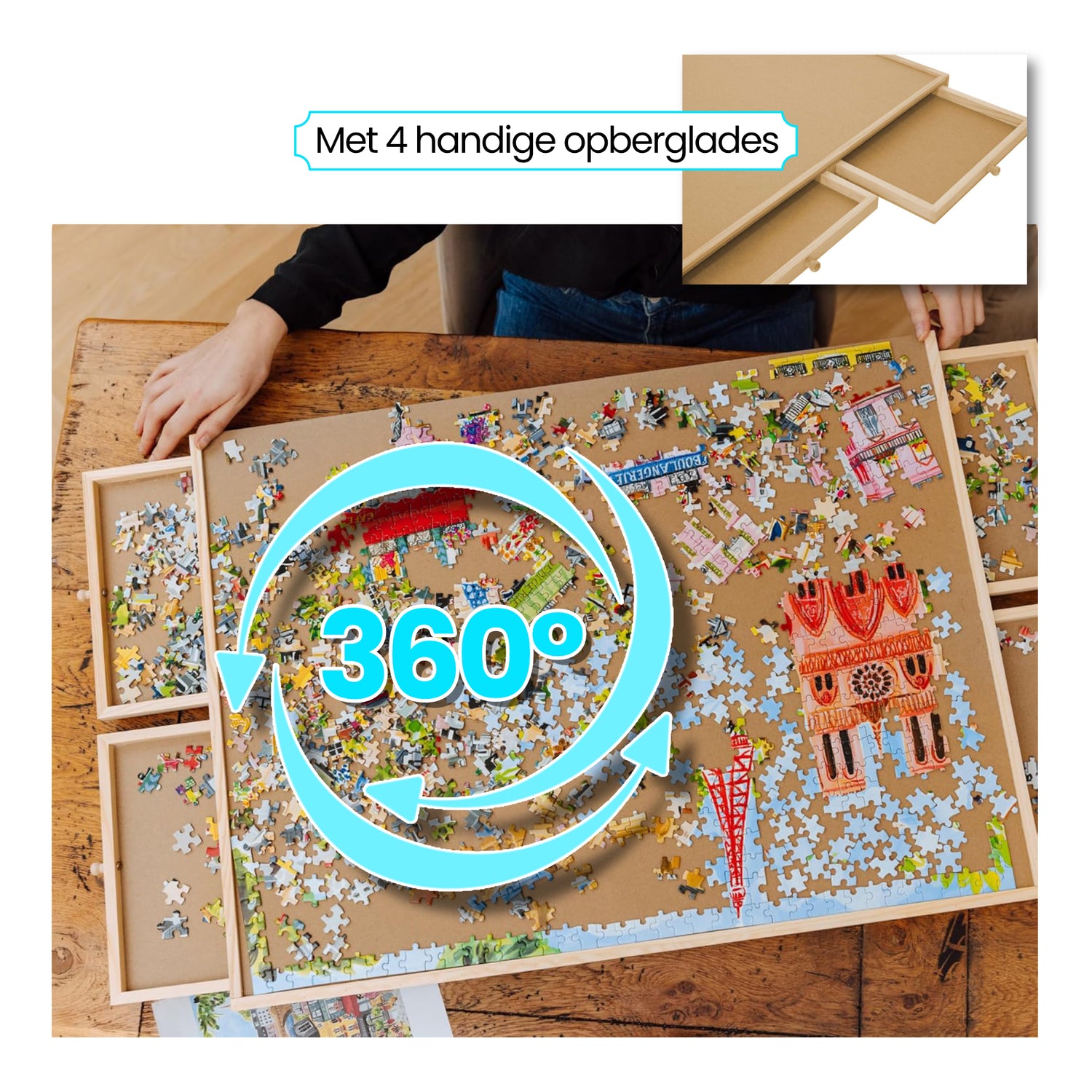 1x PiecePro puzzeltafel met 4 opbergladen, beschermhoes & draaischijf